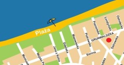 Budynek położony jest przy głównej ulicy Grunwaldzkiej, oddalony 100m od morza.